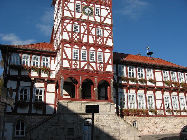 This house is called Ohrfeigenhaus (Slap House), dating from 1608. The Hessian magistrate, a man named Bley, had asked for permission to cut a few trees in the woods to build a ‘little house’. Thinking of a modest abode, the superior gave Bley permission. But Bley was not a modest man; he put up a three storeyed house with elaborately ornated half-timber features, more suited for a rich merchant. When his superior visited the town some time afterwards and beheld the whopping big house, he gave Bley a sound slap for his lies – in public to boot, and thus the house got its name.