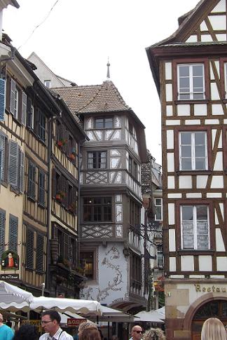 The House Kammerzell at the place in front of the minster is the finest timbered house in Strasbourg. It was built in 1427 and altered in 1589; the most spendid example of late Gothic secular timber architecture in the former Holy Roman Empire. The facade displays carving of mythological and Biblical figures.